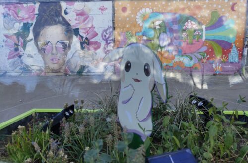 Die meisten Besucher*innen scheinen vor allem wegen den Veranstaltungen im Eingangsbereich und den Führungen gekommen zu sein. Zumindest waren wir an der ehemaligen Stützmauer, die offiziell für Graffitikünstler*innen als Leinwand freigegeben ist, alleine. Hier wird noch einmal das Motto der Parks klar, das einem in silbernen Buchstaben groß hinter dem Eingang entgegenblitzt: „Die Kunst ist der nächste Nachbar der Wildnis“. Seit Stunden schon hatten wir (außer natürlich bei der Führung) kaum eine Sekunde aufgehört zu quatschen – hier aber war die Stille so greifbar und schön, dass wir auch mal den Mund hielten. Stattdessen knipsten wir uns die Finger wund, denn die Motive waren hier wirklich dankbar. Joscha gefiel eine schwebende Bratwurst besonders gut. Es war wohl einfach an der Zeit, Essen zu gehen!